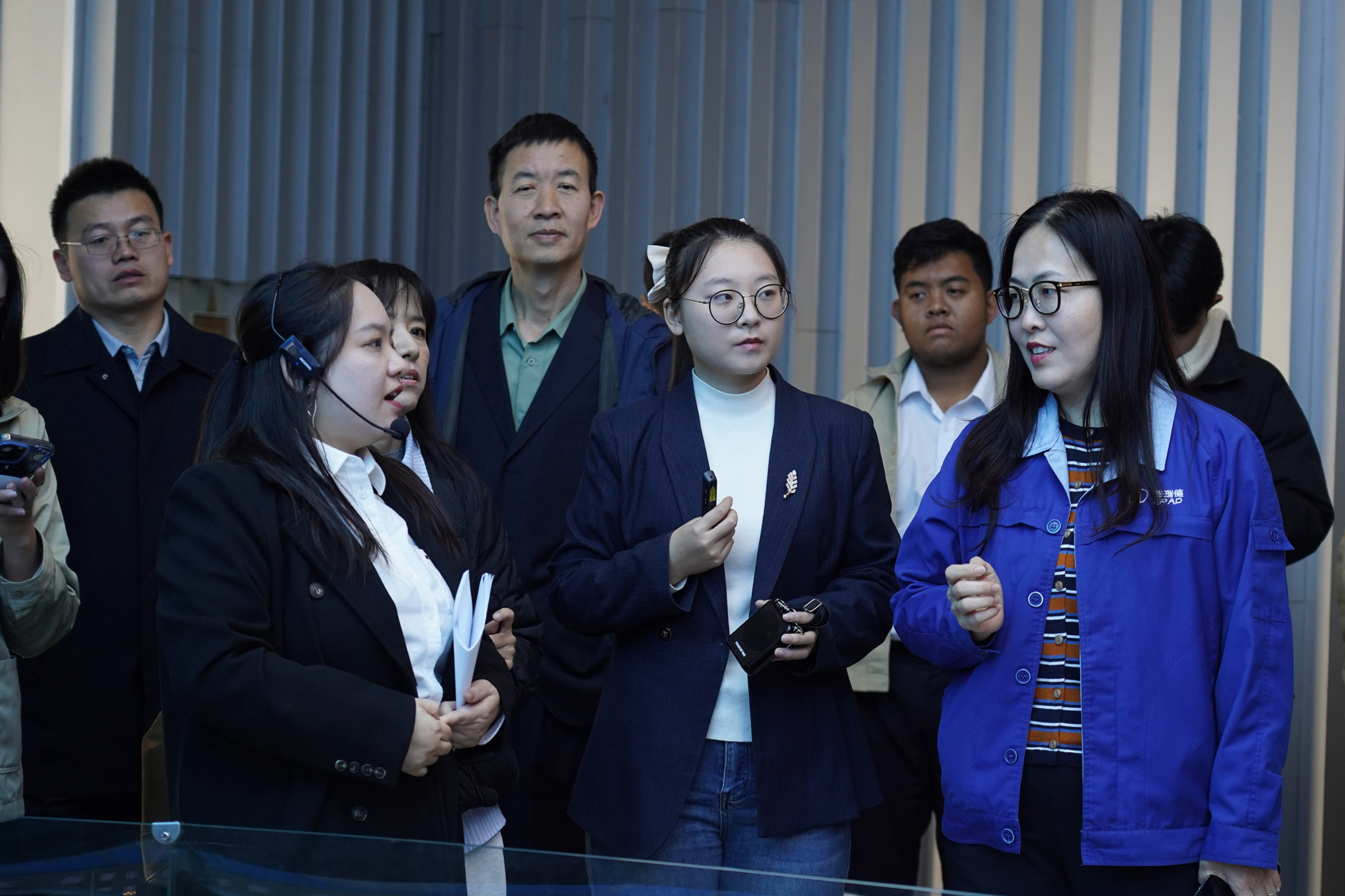 考察团一行首先参观了集团展厅。在展厅参观过程中,国贸总经理扈淑君向考察团一行介绍了集团主营产品及集团各项软硬实力。考察团一行对集团产品兴趣浓厚,并对集团实力表示赞赏。